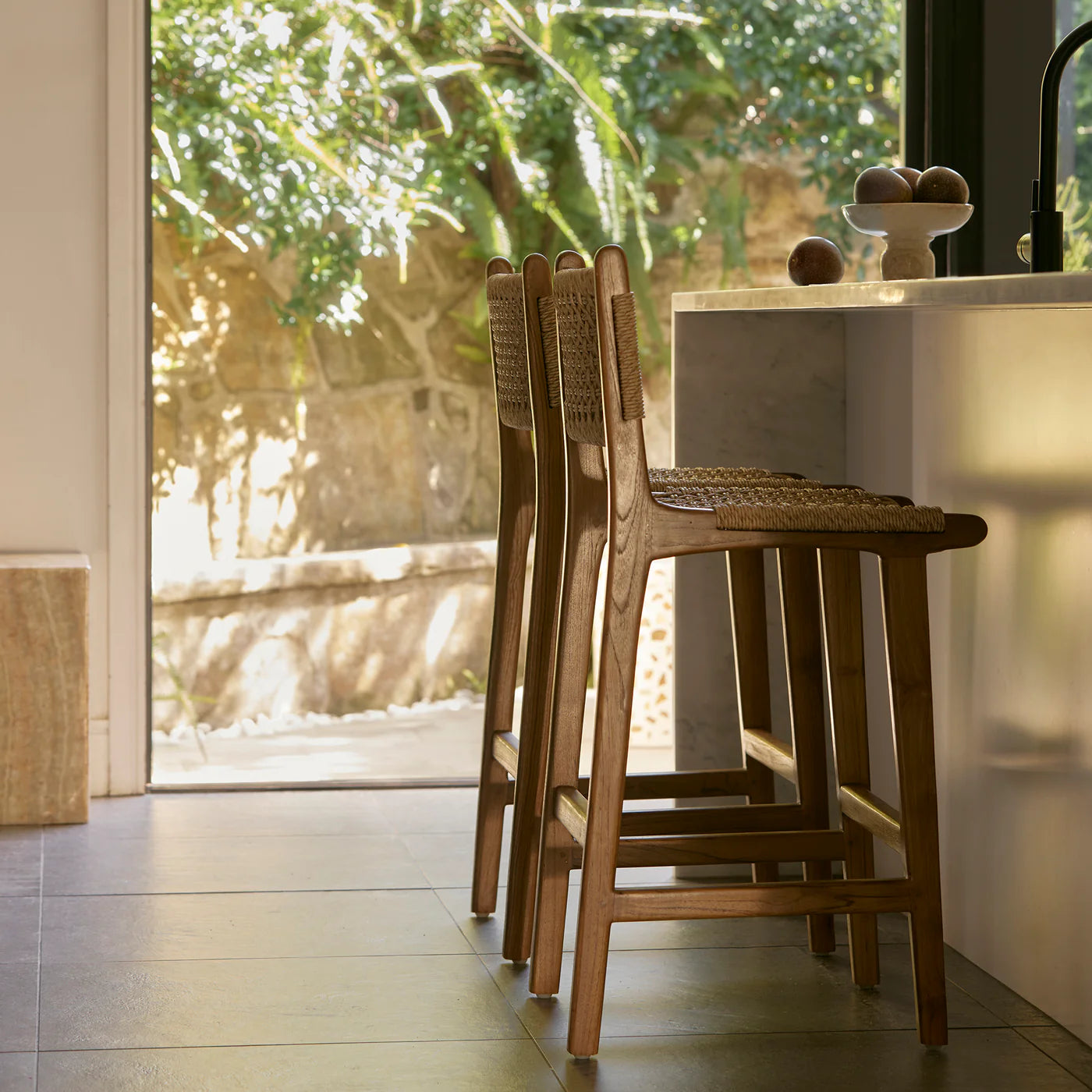 Teak Counter stool Barstool with woven rope